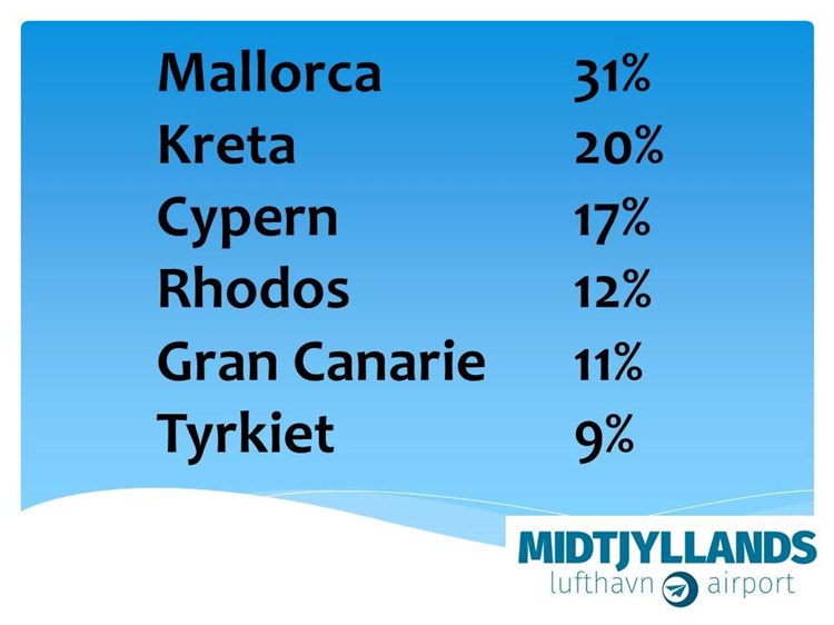 Vi arbejder på at gentage succesen igen næste sommer, og i en undersøgelse foretaget af Midtjyllands Lufthavn fandt vi frem til de 6 destinationer der stod øverste på ønskelisten.